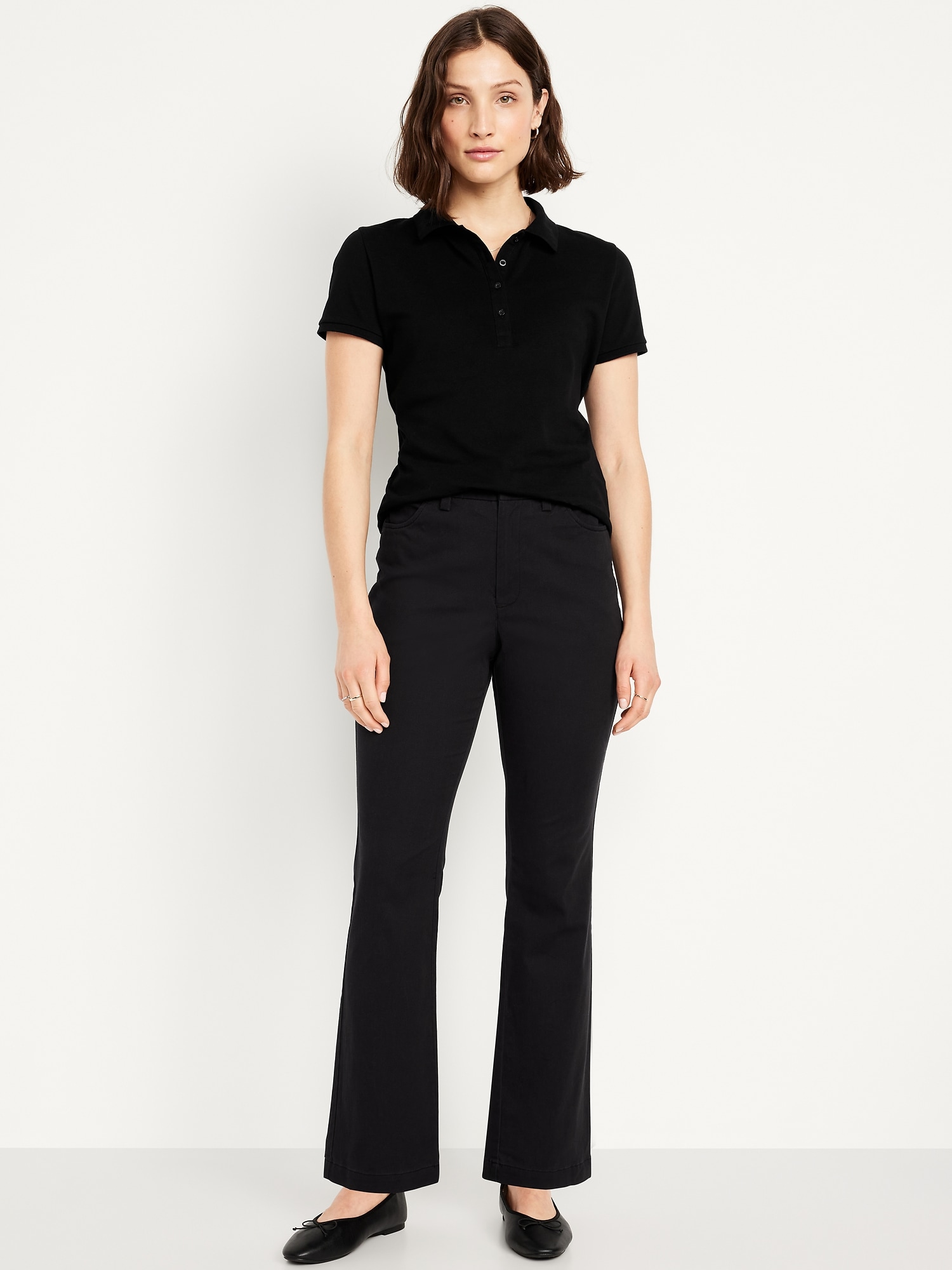 High-Waisted Uniform Boot-Cut Pants: zip fly, front scoop pockets, back right welt pocket, darted back waist, boot-cut leg, #771879