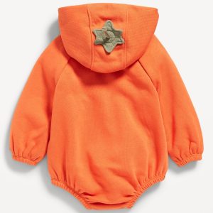 Hooded Critter Fleece One-Piece Romper for Baby: built-in hood, baby chick features at crown, long sleeves, elasticized bubble leg openings, hidden snaps at inseam, #802684