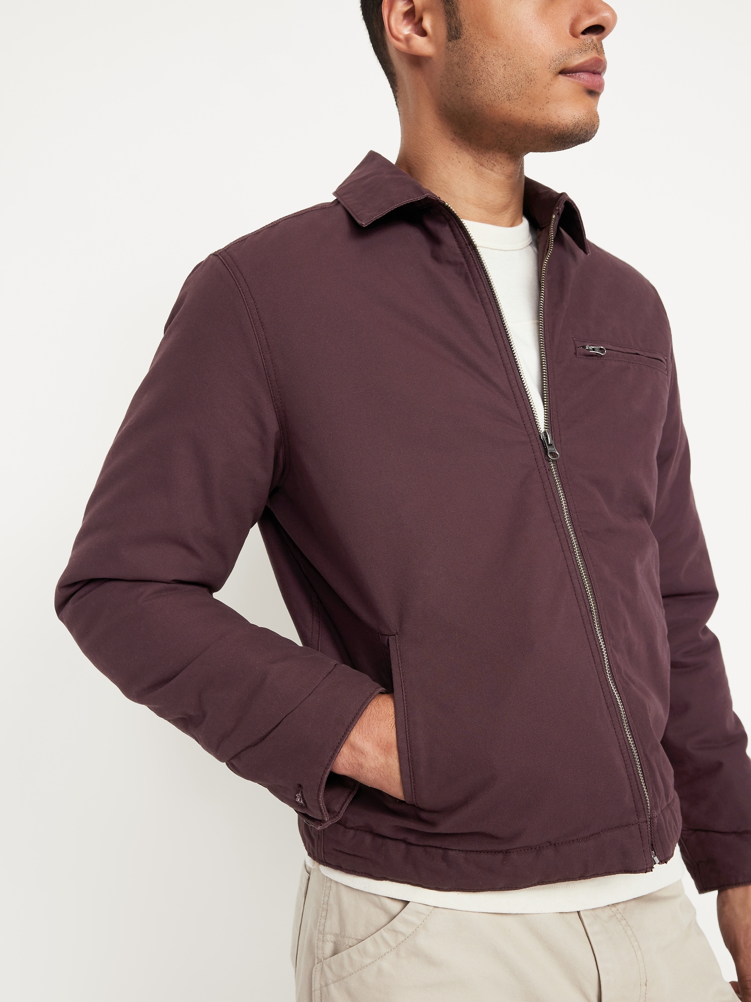 Insulated Canvas Barn Jacket: spread collar, long sleeves, full-zip front, zip-welt chest pocket, vertical welt pockets, all-over print, fully lined, #800306