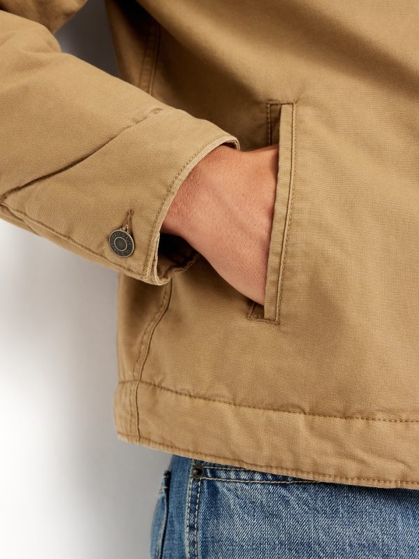 Insulated Canvas Barn Jacket: spread collar, long sleeves, full-zip front, zip-welt chest pocket, vertical welt pockets, all-over print, fully lined, #800306