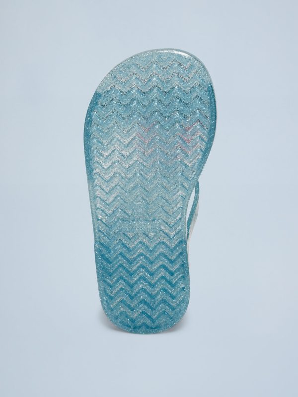 Jelly T-Strap Sandals for Toddler Girls: t-strap thong upper, firm foot bed, textured outsole, graphic across foot, glitter pattern or solid jelly, #688628