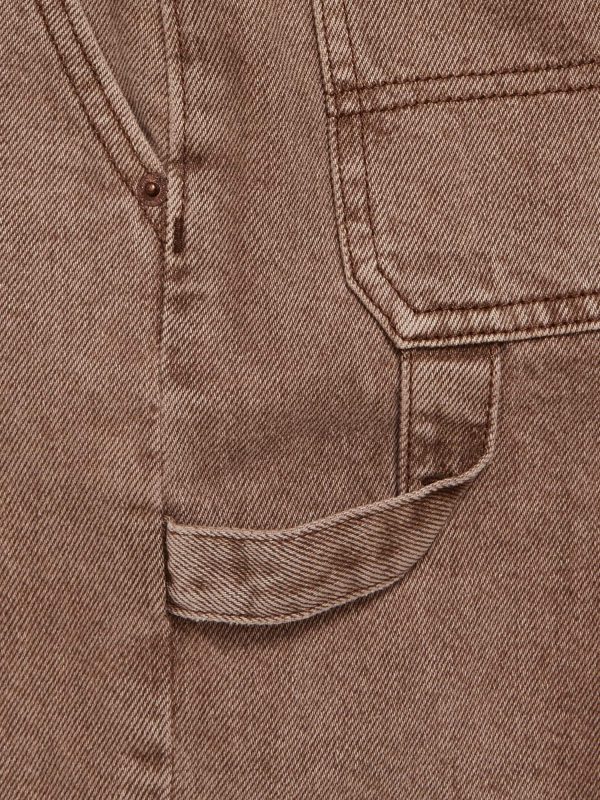 Knee Length Baggy Carpenter Jean Shorts for Boys: interior adjustable waistband, snap-button closure in sizes 5-8, regular button closure in sizes 10-20, zip fly, diagonal pockets at front, utility patch pockets at back and side of leg, built-in hammer loop at left leg, #681352