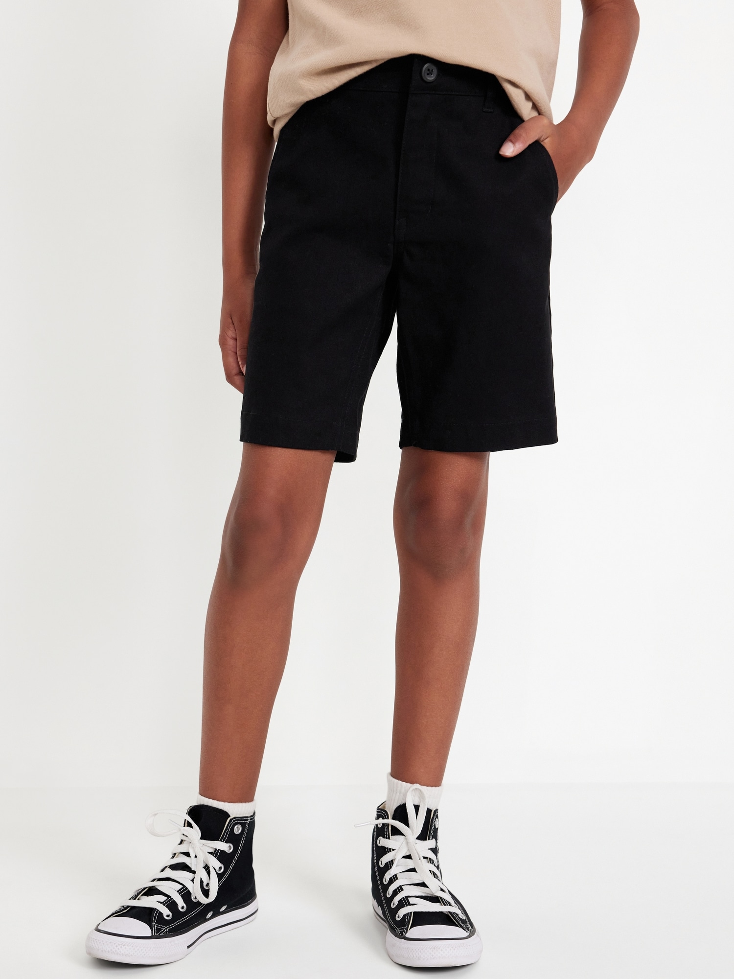 Knee Length Twill Shorts for Boys: Uniform Guarantee: Uniforms may be returned for a full refund with the original receipt for 365 days from the date of purchase.interior adjustable waistband, hook & bar closure in sizes 5-8, regular button closure in sizes 10-20, zip fly, flat front, diagonal on-seam pockets in front, single welt pocket at back, online exclusive, #860604