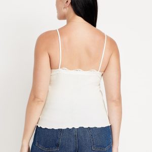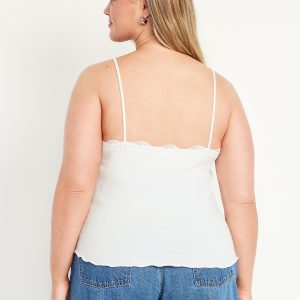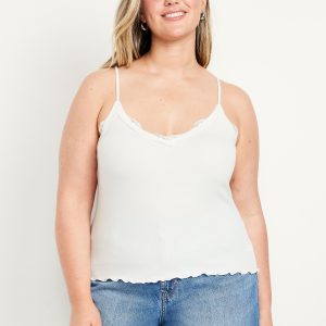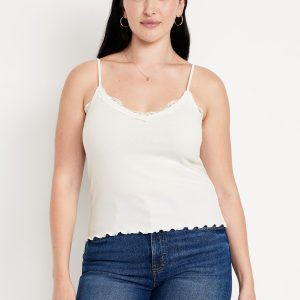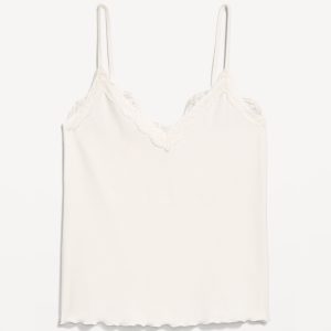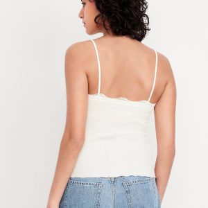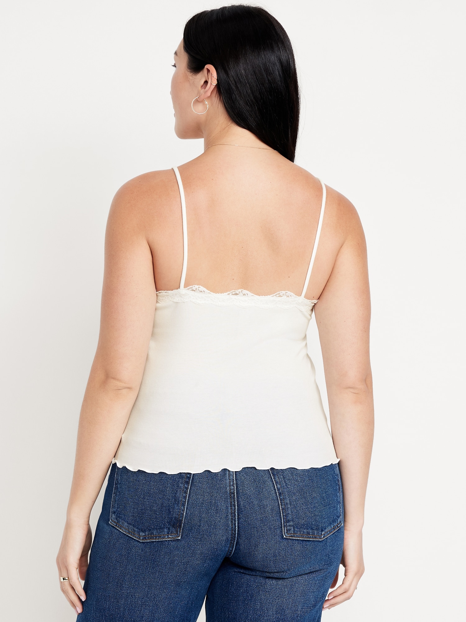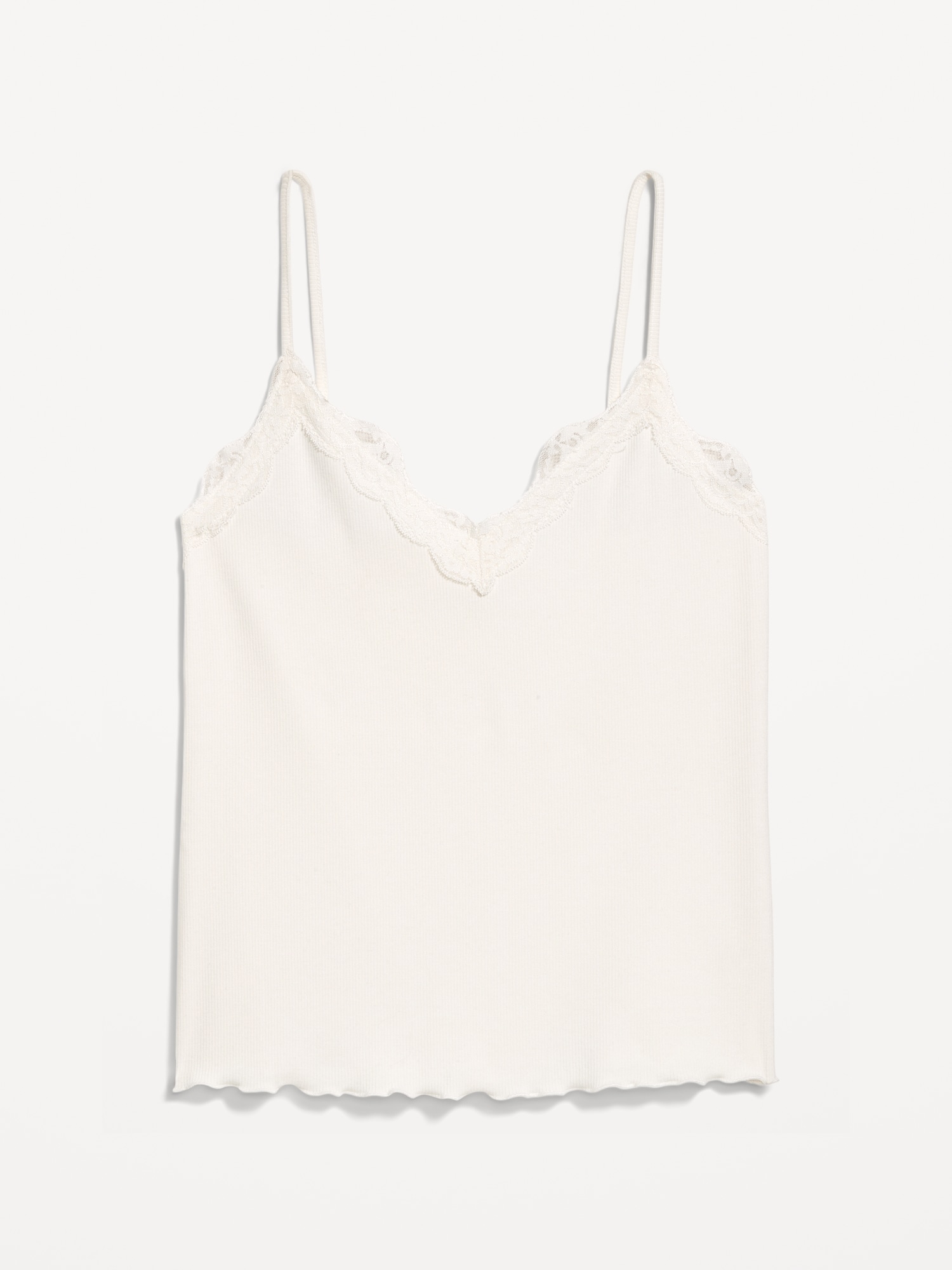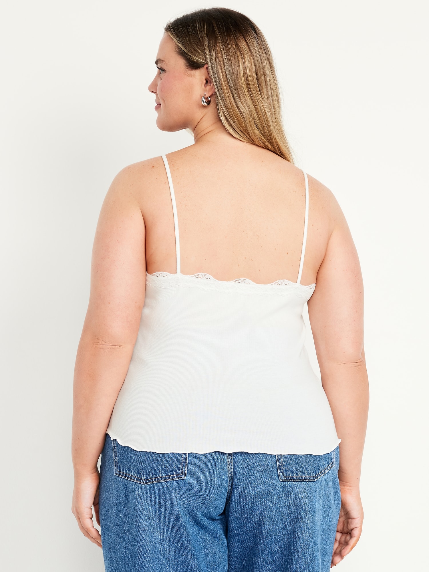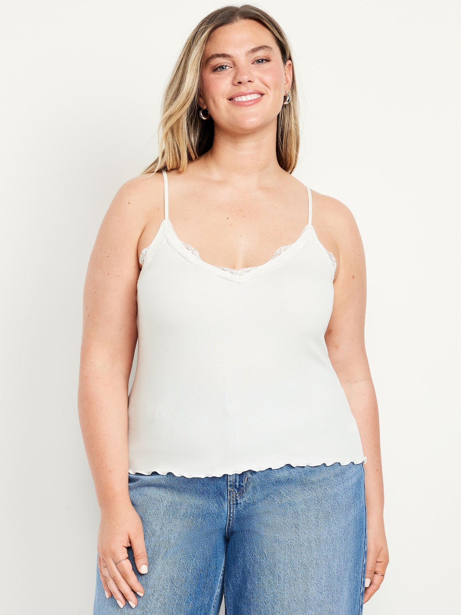 Lace-Trim Cami Tank Top: lace-trim v-neck, adjustable straps, #749270