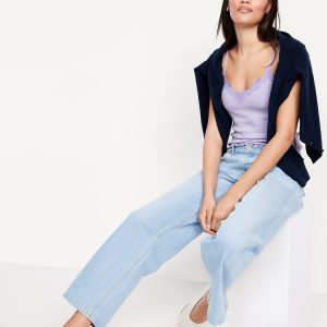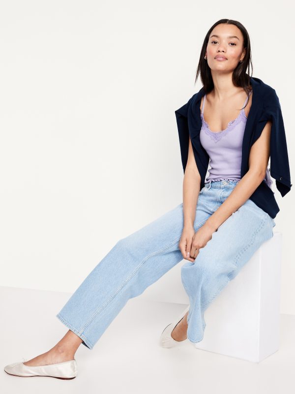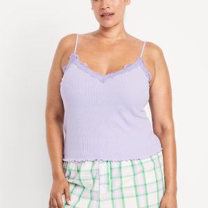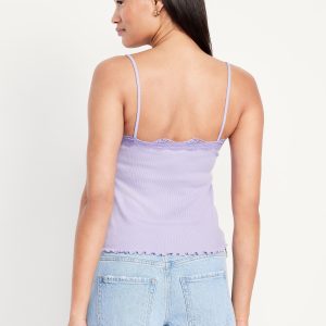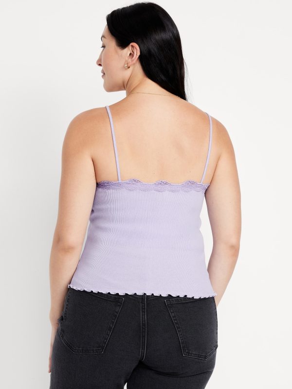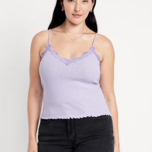 Lace-Trim Cami Tank Top: lace-trim v-neck, adjustable straps, #749270