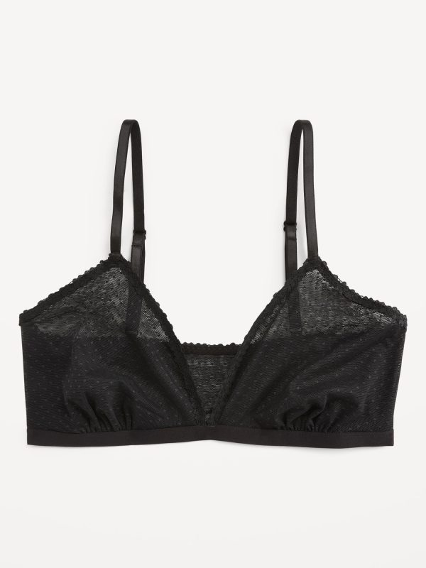 Lace-Trim Dot-Mesh Bralette: plunging v-neck, adjustable straps, brushed elastic hem, #800569