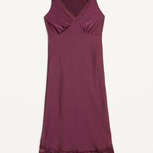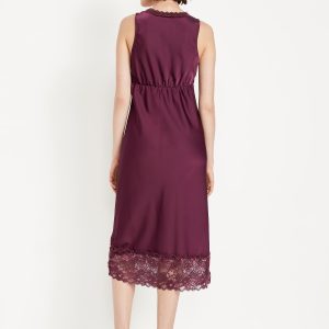 Lace-Trim Satin Midi Dress: lace-trim v-neck, sleeveless, seamed bodice, #798219