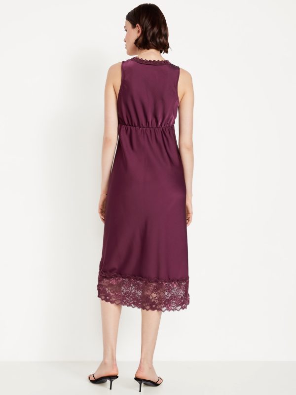 Lace-Trim Satin Midi Dress: lace-trim v-neck, sleeveless, seamed bodice, #798219
