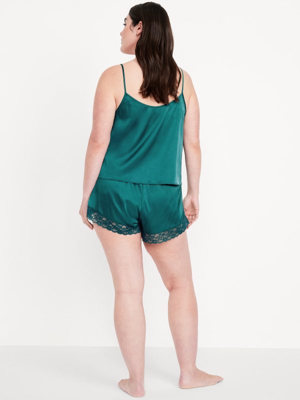 Lace-Trim Satin Pajama Short Set