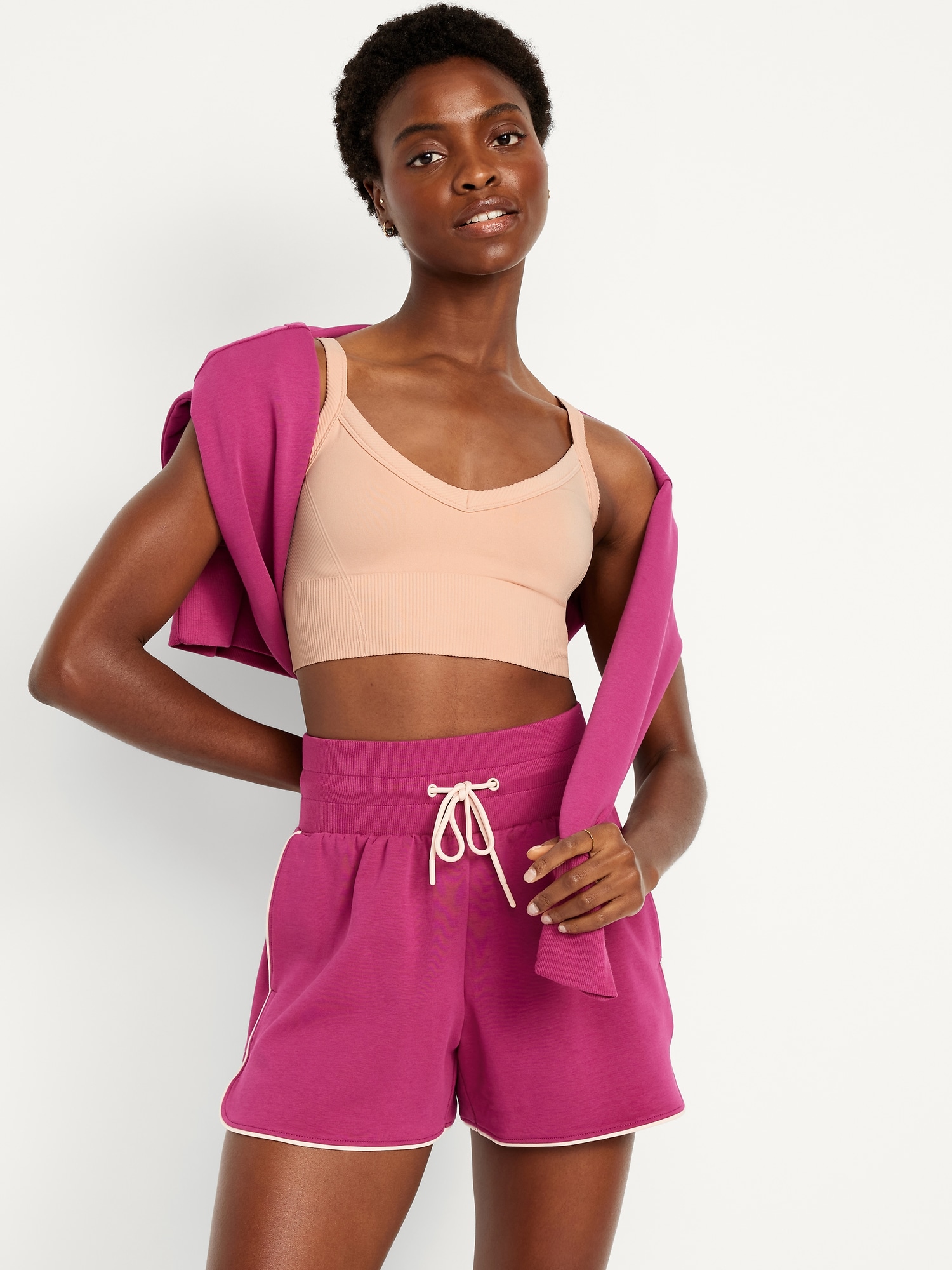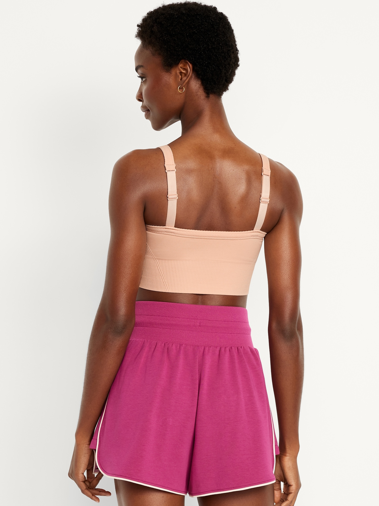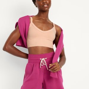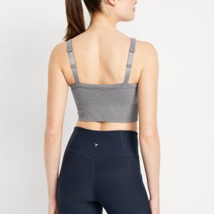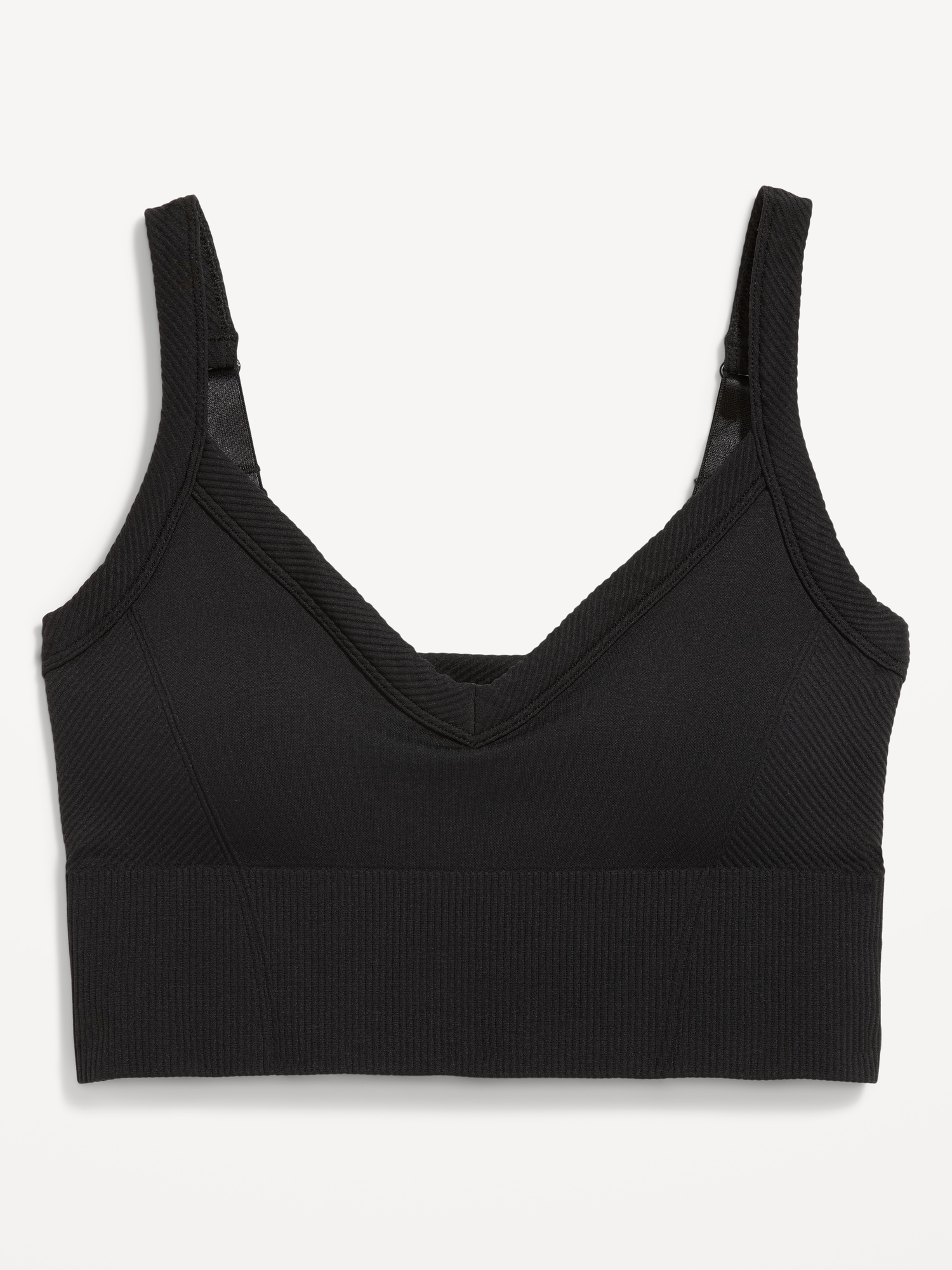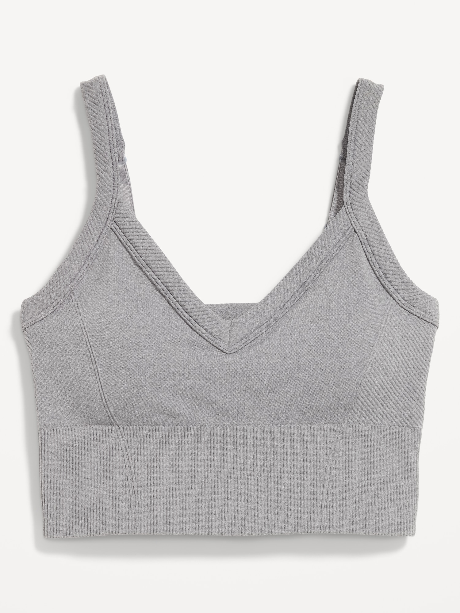 Light Support Fluid Seamless Longline Sports Bra: Featuring Fluid Seamless, for breathable, barely-there feels.plunging v-neck, wide adjustable straps, ribbed panels, bra pads, go-dry wicks moisture, #749261