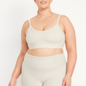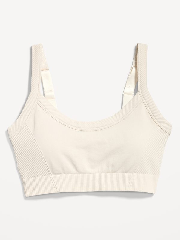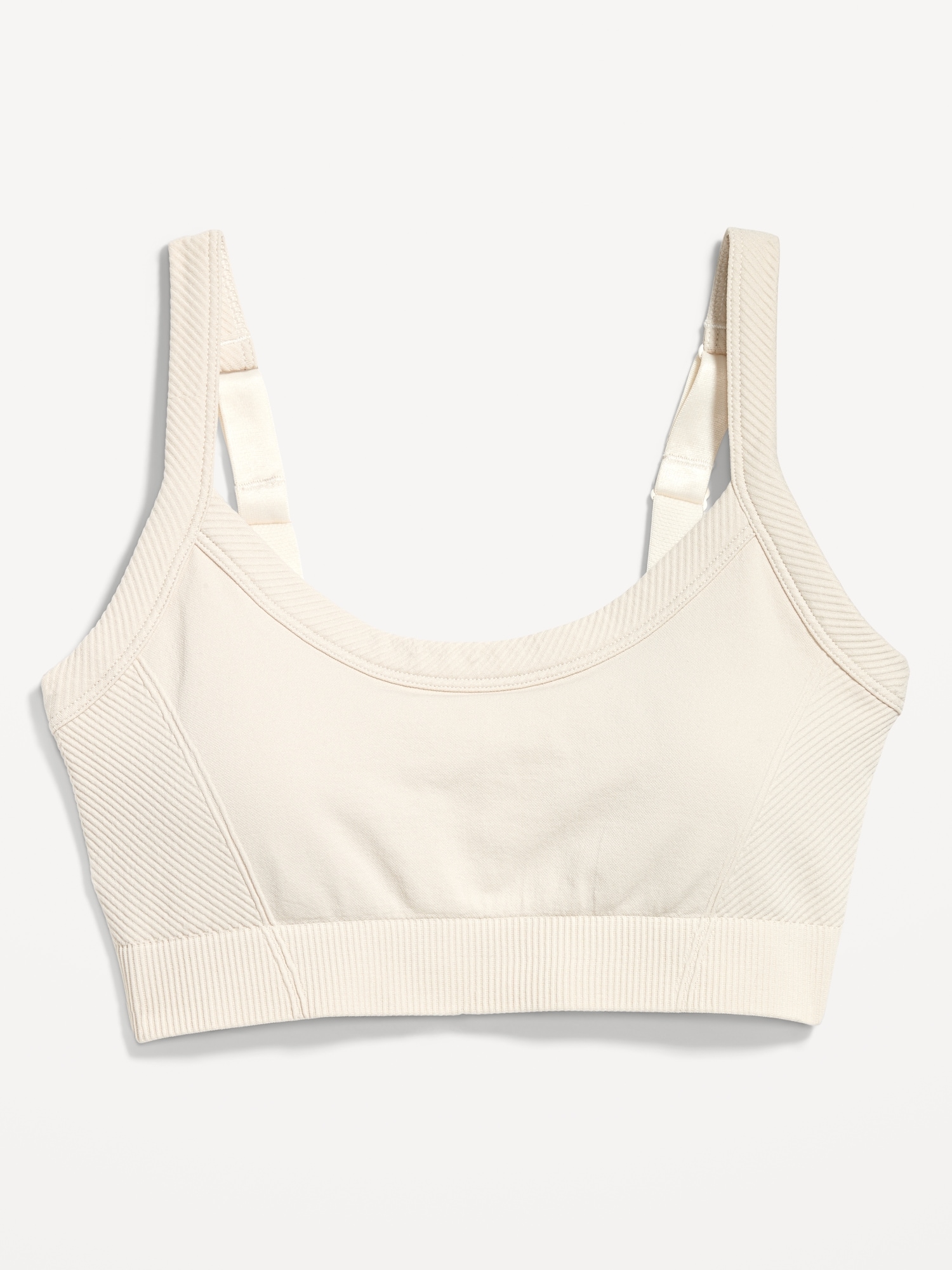Light Support Fluid Seamless Ribbed Sports Bra: Featuring Fluid Seamless, for breathable, barely-there feels.scoop neck, adjustable straps, #845757