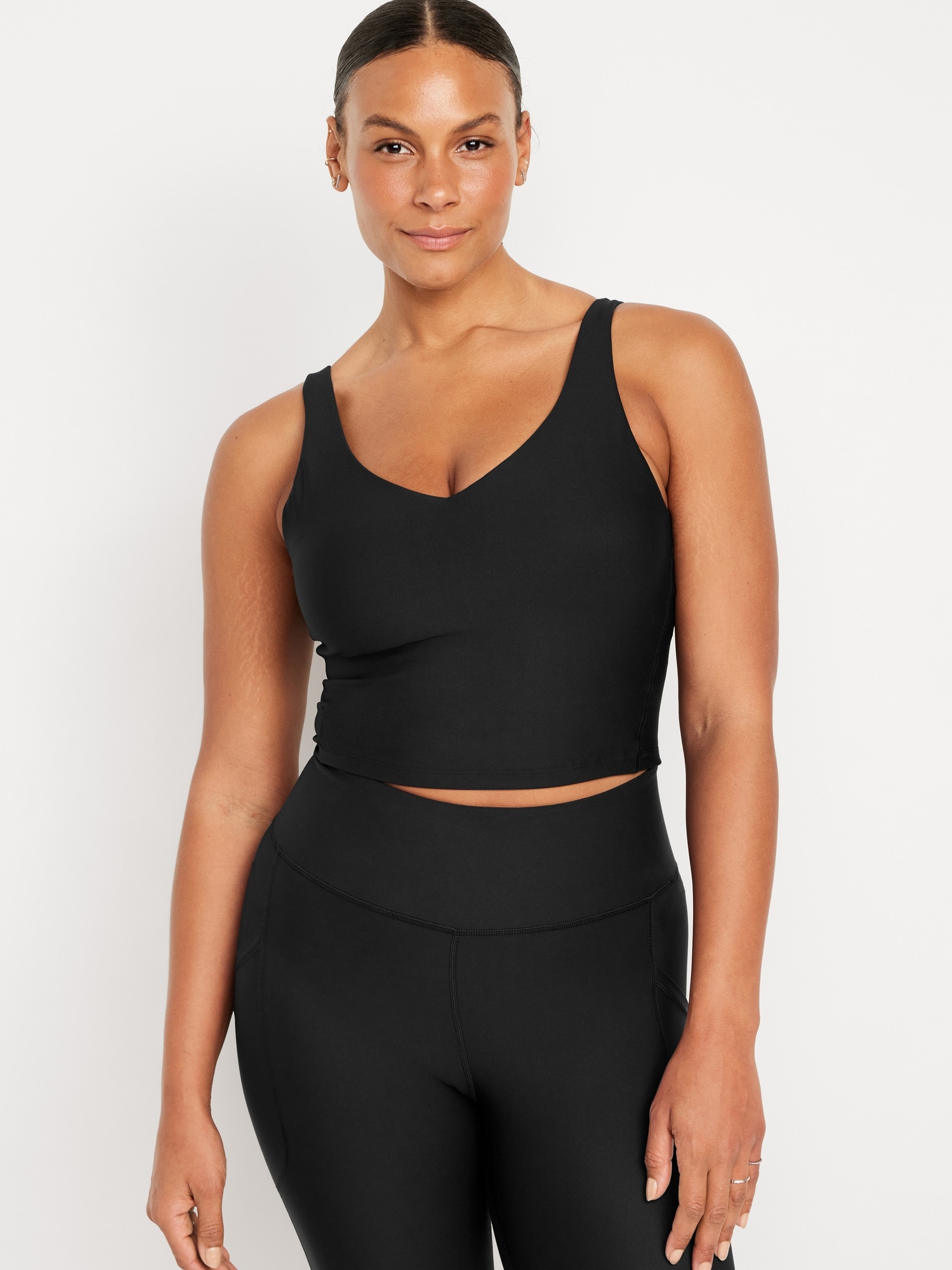 Light Support PowerSoft Longline Sports Bra: Featuring PowerSoft. Light compression meets a peachy-smooth, sweat-wicking fabric.deep v-neck, removable cups, brushed elastic hem, go-dry wicks moisture, #892232