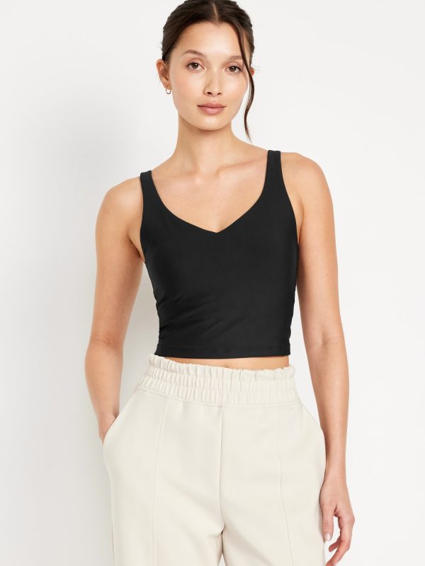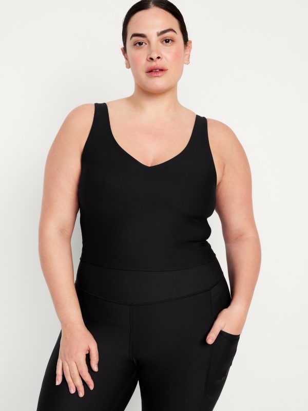 Light Support PowerSoft Longline Sports Bra: Featuring PowerSoft. Light compression meets a peachy-smooth, sweat-wicking fabric.deep v-neck, removable cups, brushed elastic hem, go-dry wicks moisture, #892232