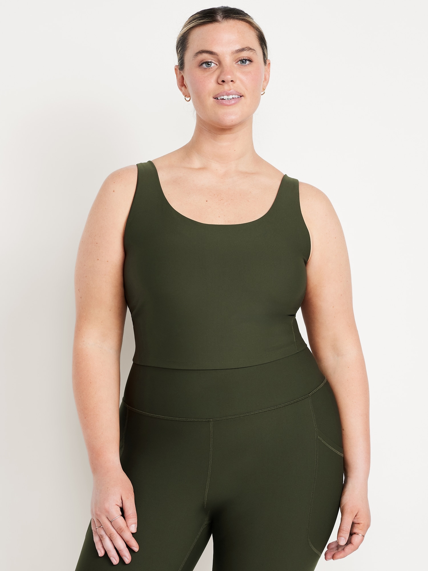 Light Support PowerSoft Longline Sports Bra: Featuring PowerSoft. Light compression meets a peachy-smooth, sweat-wicking fabric.scoop neck, wide straps, removable cups, front mesh lining, go-dry wicks moisture, #723227