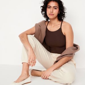 Light Support StudioSmooth Longline Sports Bra: Featuring StudioSmooth. Buttery soft and breathable, with a barely-there feel.high neck, spaghetti straps, removable pads, racerback, go-dry wicks moisture, #694514
