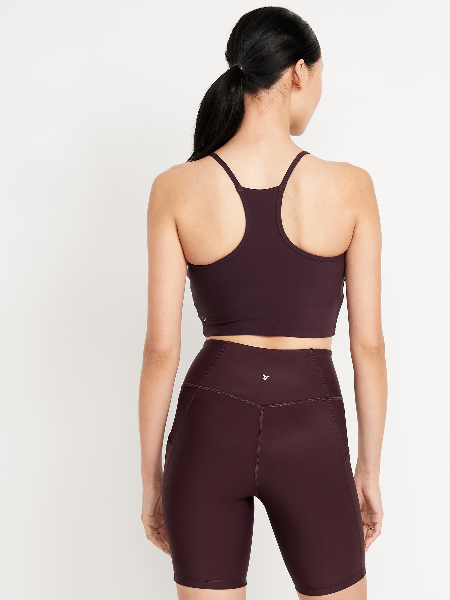 Light Support StudioSmooth Longline Sports Bra: Featuring StudioSmooth. Buttery soft and breathable, with a barely-there feel.high neck, spaghetti straps, removable pads, racerback, go-dry wicks moisture, #694514