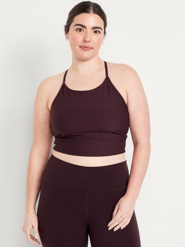 Light Support StudioSmooth Longline Sports Bra: Featuring StudioSmooth. Buttery soft and breathable, with a barely-there feel.high neck, spaghetti straps, removable pads, racerback, go-dry wicks moisture, #694514