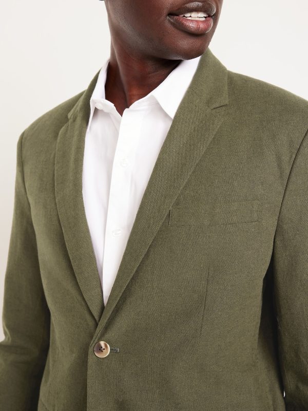 Linen-Blend Blazer: notched lapel, long sleeves, buttoned cuffs, two-button front, welt chest pocket, flap pockets, unlined, #762689