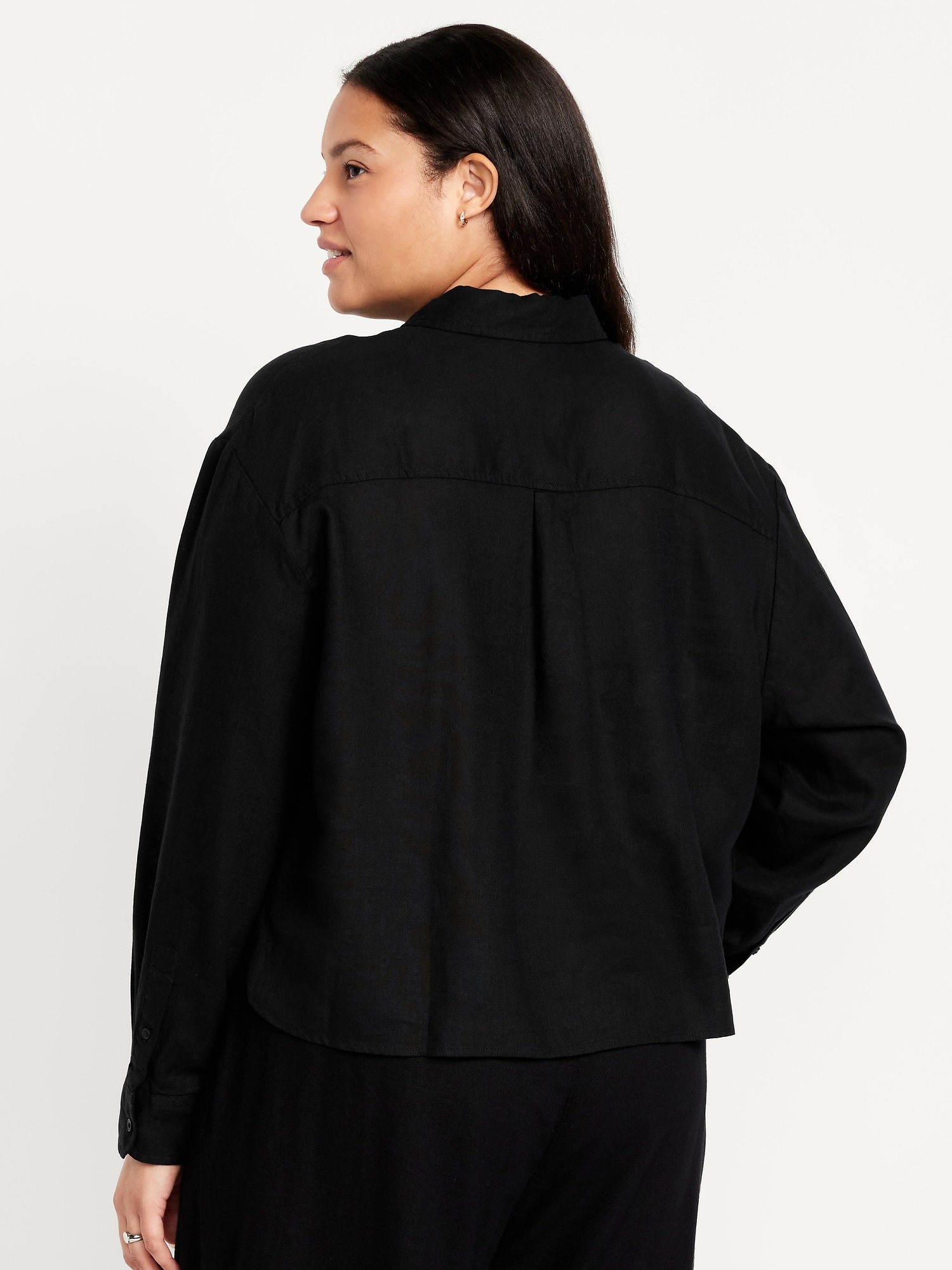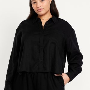 Linen-Blend Button-Down Crop Shirt