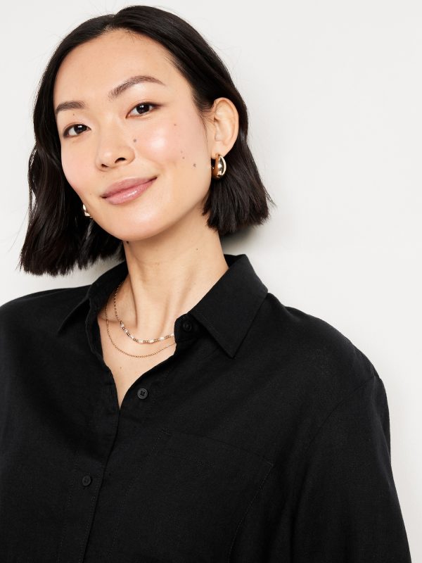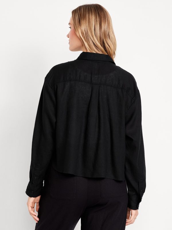 Linen-Blend Button-Down Crop Shirt