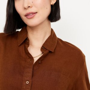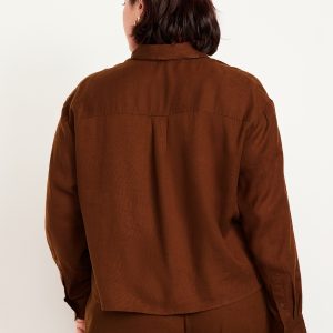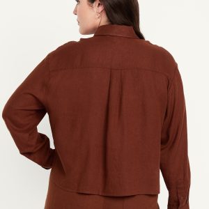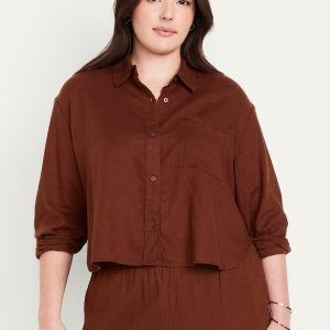 Linen-Blend Button-Down Crop Shirt