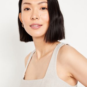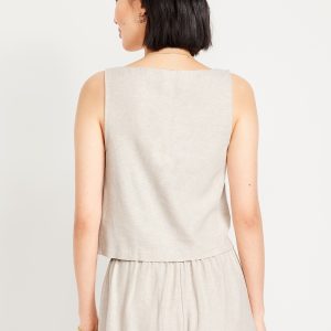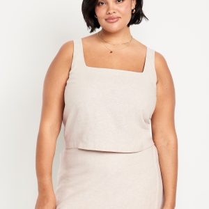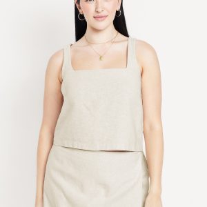 Linen-Blend Crop Top: square neck, sleeveless, darted bust, #756733