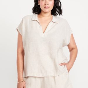 Linen-Blend Cropped Popover Shirt