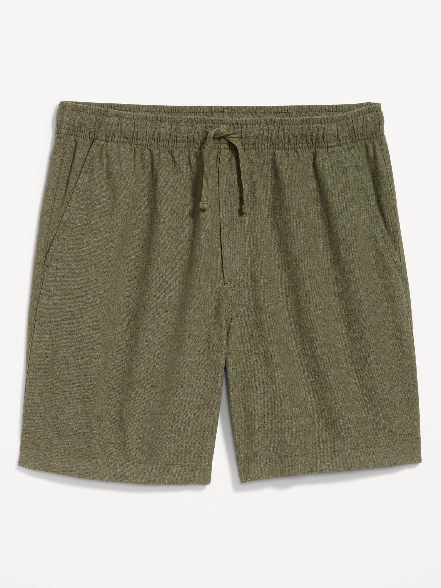 Linen-Blend Jogger Shorts — 7-inch inseam: elastic-drawstring waistband, diagonal hip pockets, back right welt pocket, #695576