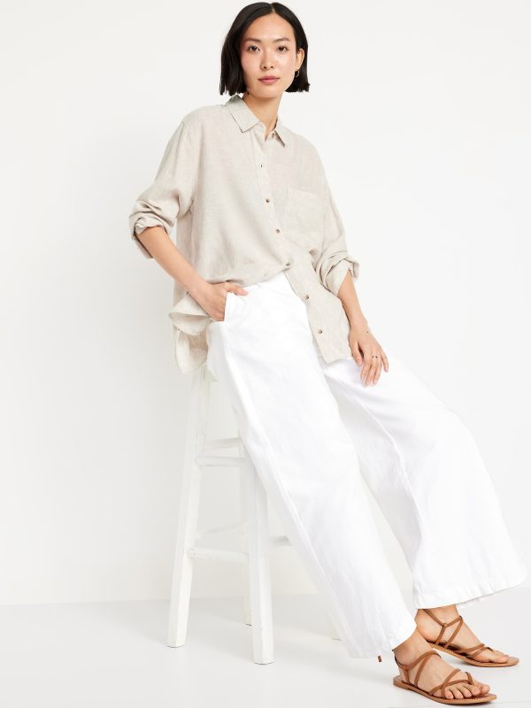 Extra High-Waisted Linen-Blend Taylor Wide-Leg Trouser Pants