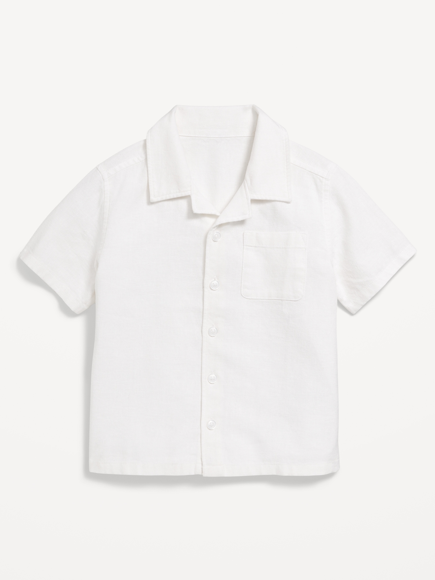 Linen-Blend Pocket Shirt for Toddler Boys: pointed spread collar, short sleeves, full-length button front, flap buttoned utility pockets at chest, #859469
