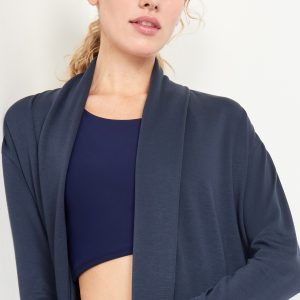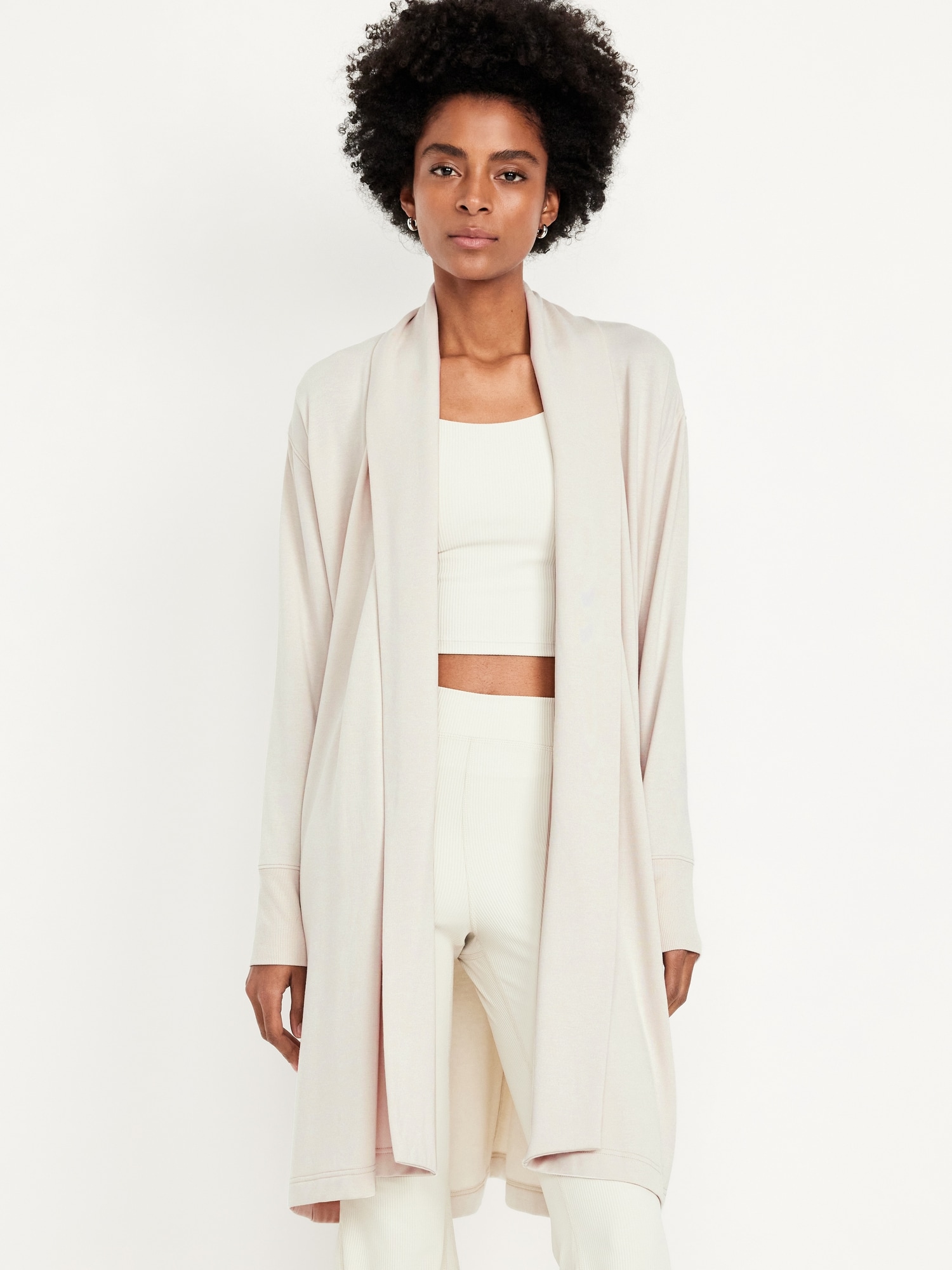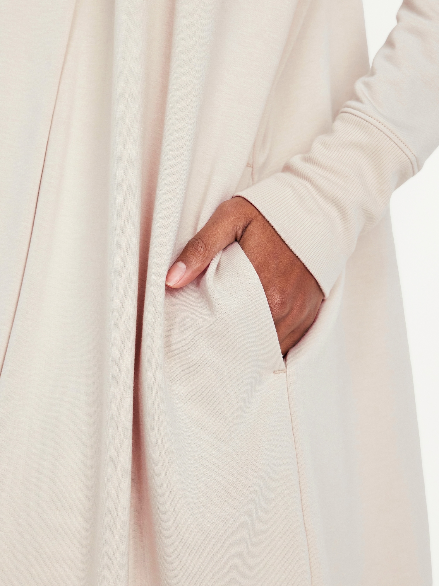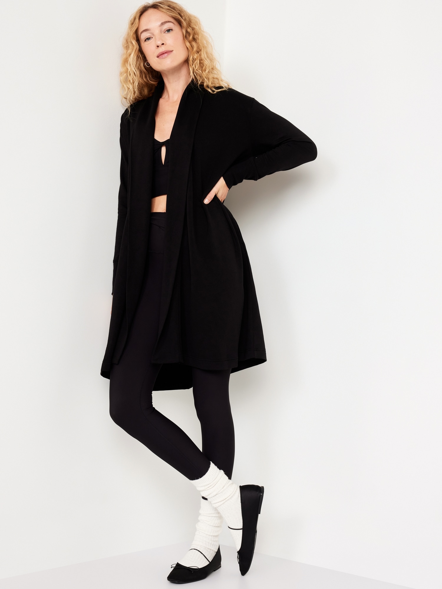 Live-In Open-Front Longline Wrap: open front, long sleeves, jersey-lined side pockets, #607749