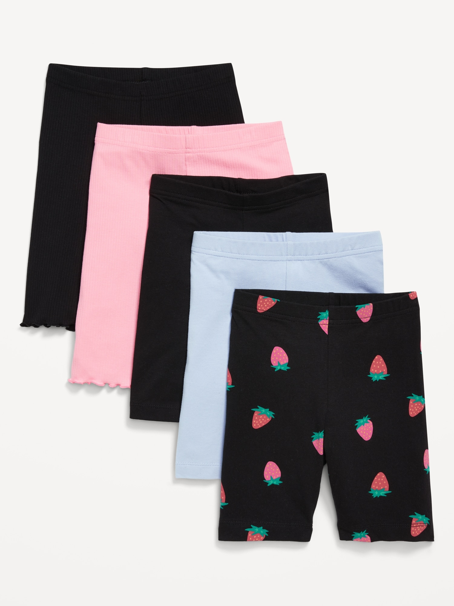 Long Biker Shorts Variety 5-Pack for Girls: elasticized comfort waistband, easy pull-on style, lettuce edge trim in select colors, online exclusive, #693647