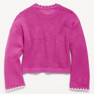 Long-Sleeve Crochet-Floral Sweater for Girls