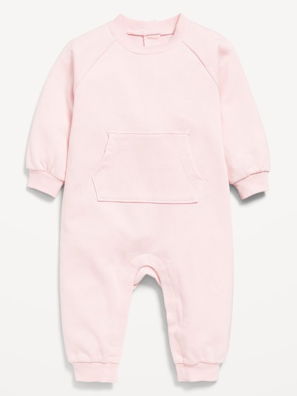 Long-Sleeve Fleece One-Piece Jumpsuit for Baby: crew neck, long sleeves, snap-button placket at nape, kangaroo pocket, hidden snaps along inseam, #802627