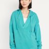 Long-Sleeve Gauze Kaftan: split tassel-front neck, long sleeves, elastic cuffs, split seams, #766932
