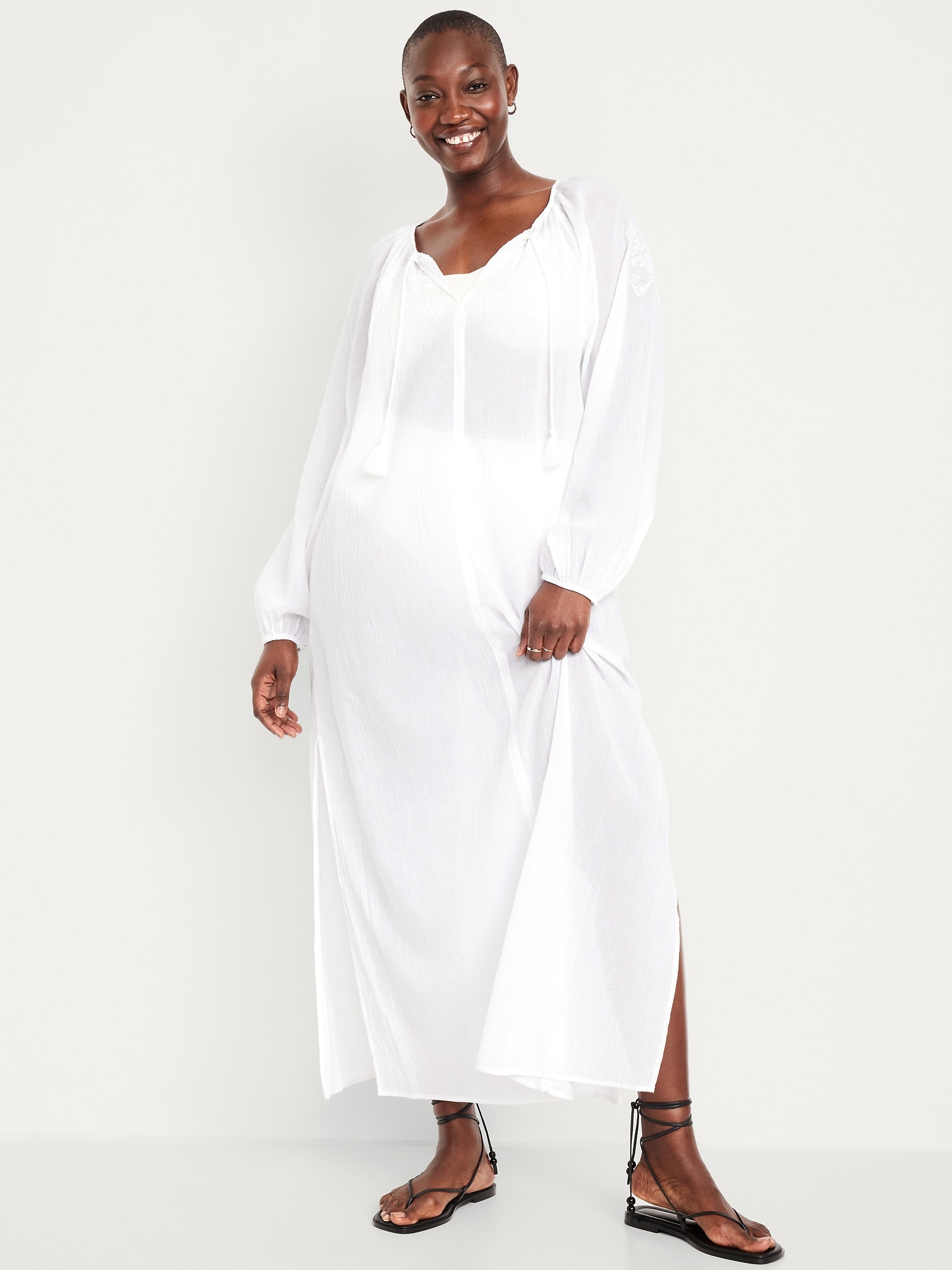 Long-Sleeve Gauze Kaftan