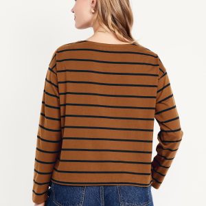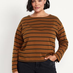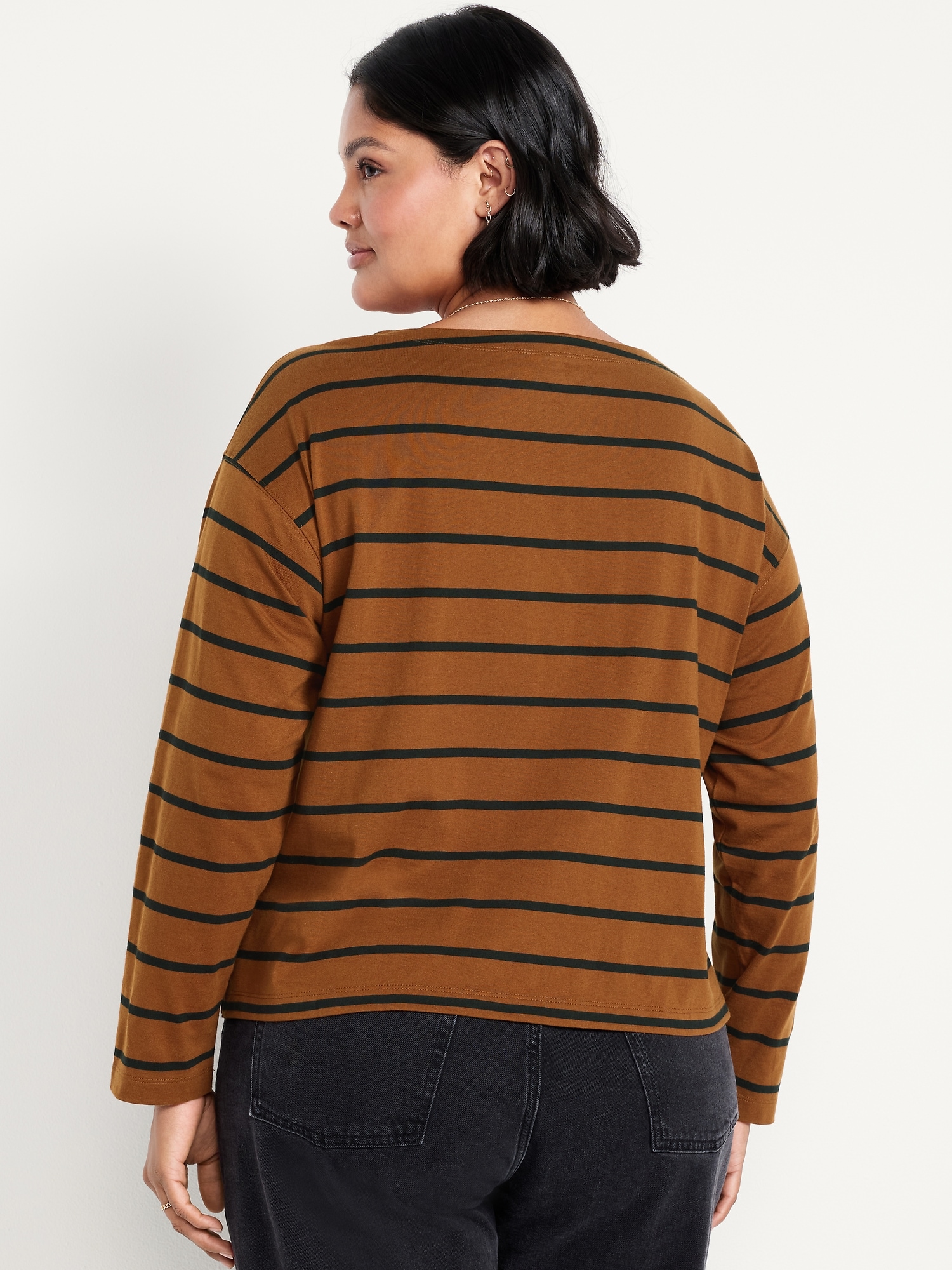 Long-Sleeve Mariner Loose T-Shirt: boat neck, long sleeves, striped print, #794582