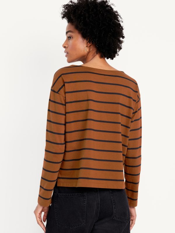 Long-Sleeve Mariner Loose T-Shirt: boat neck, long sleeves, striped print, #794582