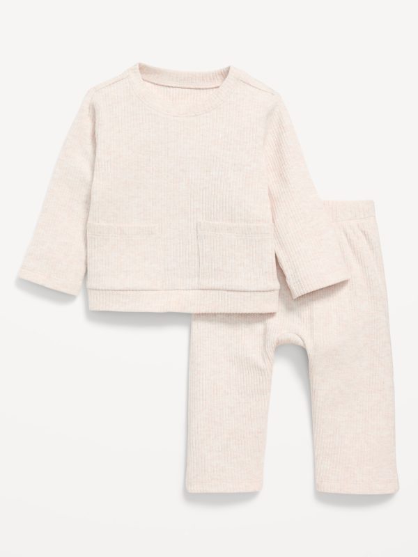Long-Sleeve Ribbed Pocket T-Shirt and Pants Set for Baby