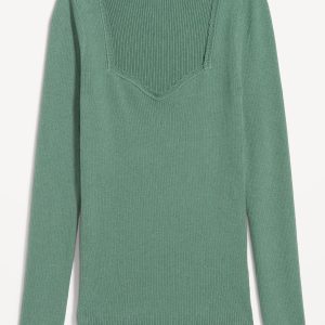 Long-Sleeve Ribbed Sweater: sweetheart neckline, long sleeves, pullover style, #576694