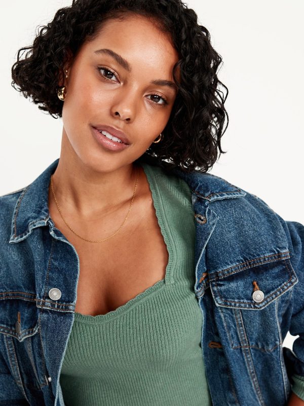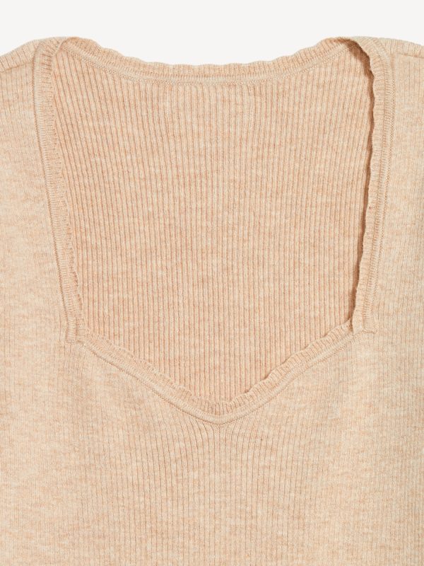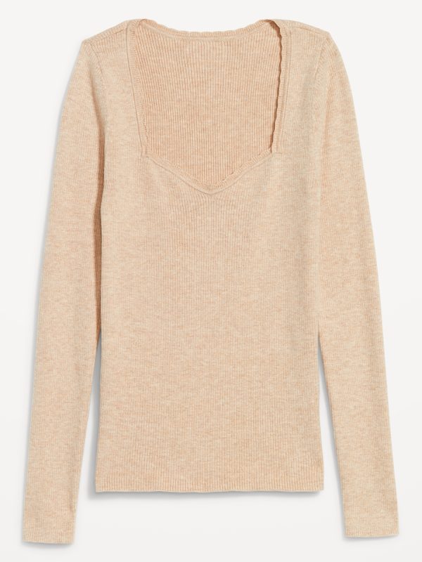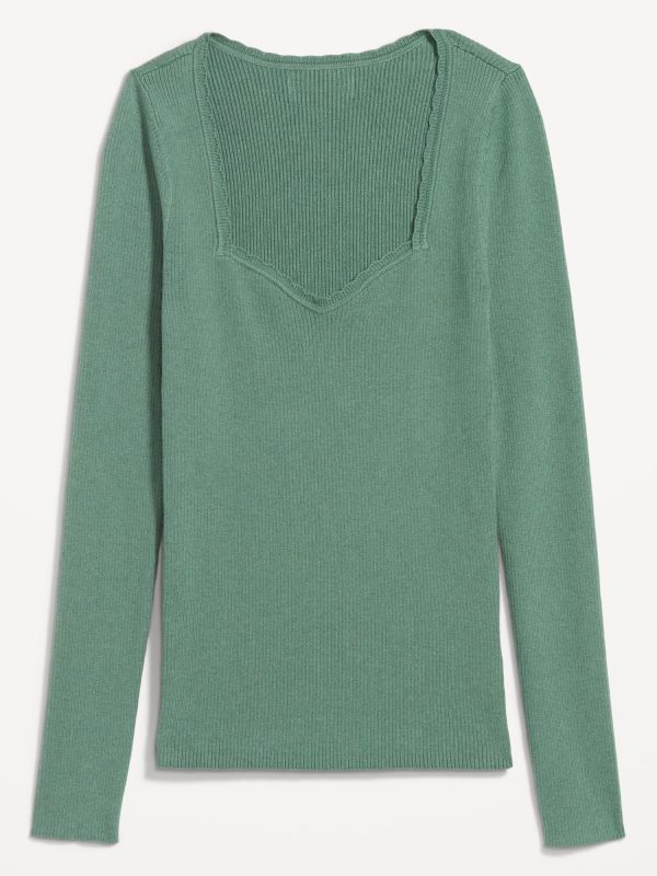 Long-Sleeve Ribbed Sweater: sweetheart neckline, long sleeves, pullover style, #576694