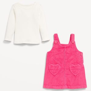 Long-Sleeve Ribbed T-Shirt and Corduroy Dress Set for Baby