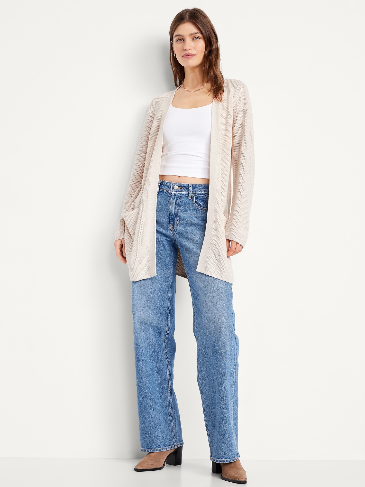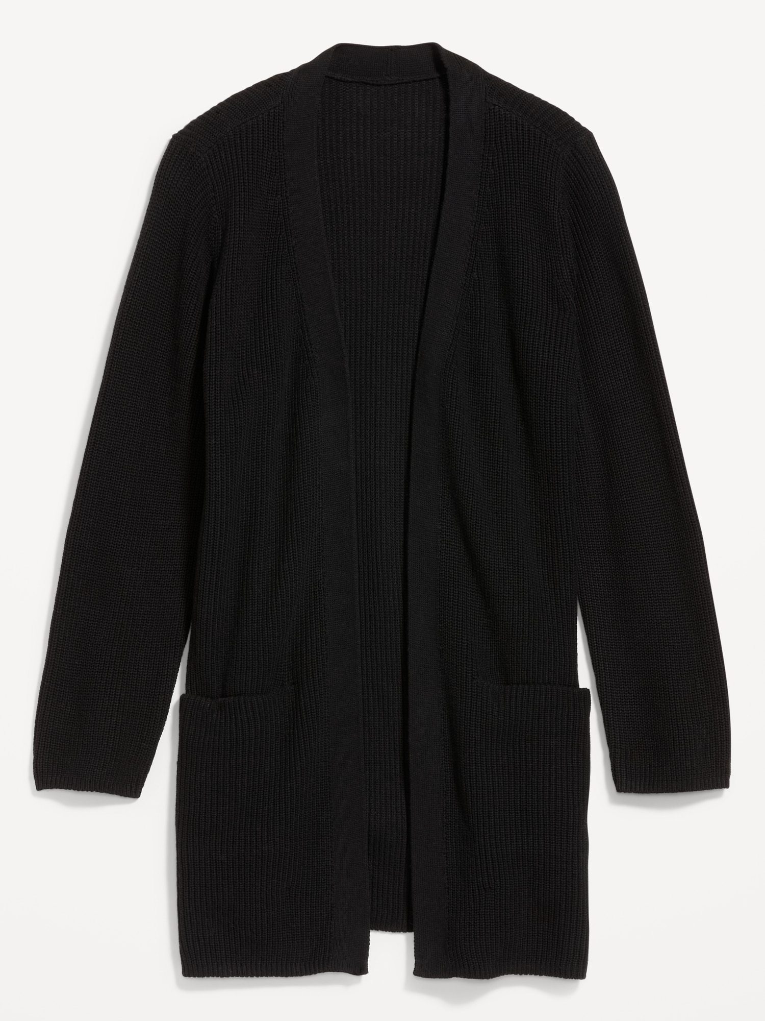 Longline Open-Front Sweater: long sleeves, patch pockets, vented sides, #784424