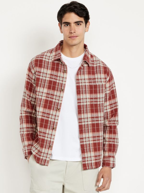 Loose Fit Plaid Pocket Shirt: spread collar, long sleeves with buttoned cuffs, full-button front, patch chest pocket, plaid print, #762448