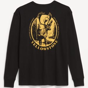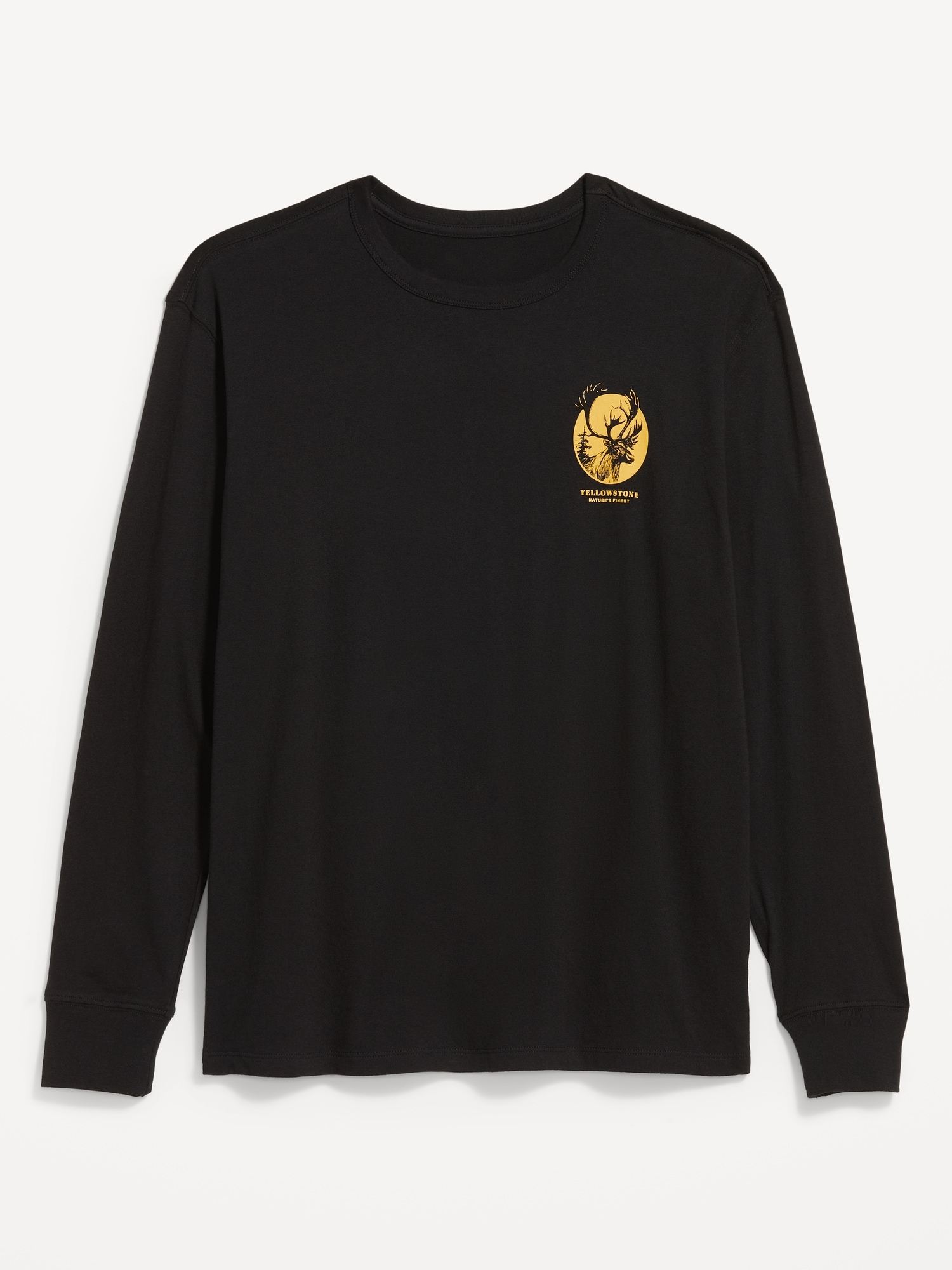 Loose Graphic T-Shirt: crew neck, long sleeves, graphic varies by color, rib-knit trim, #807659