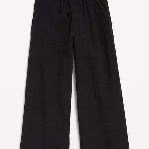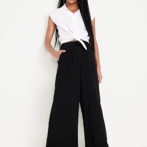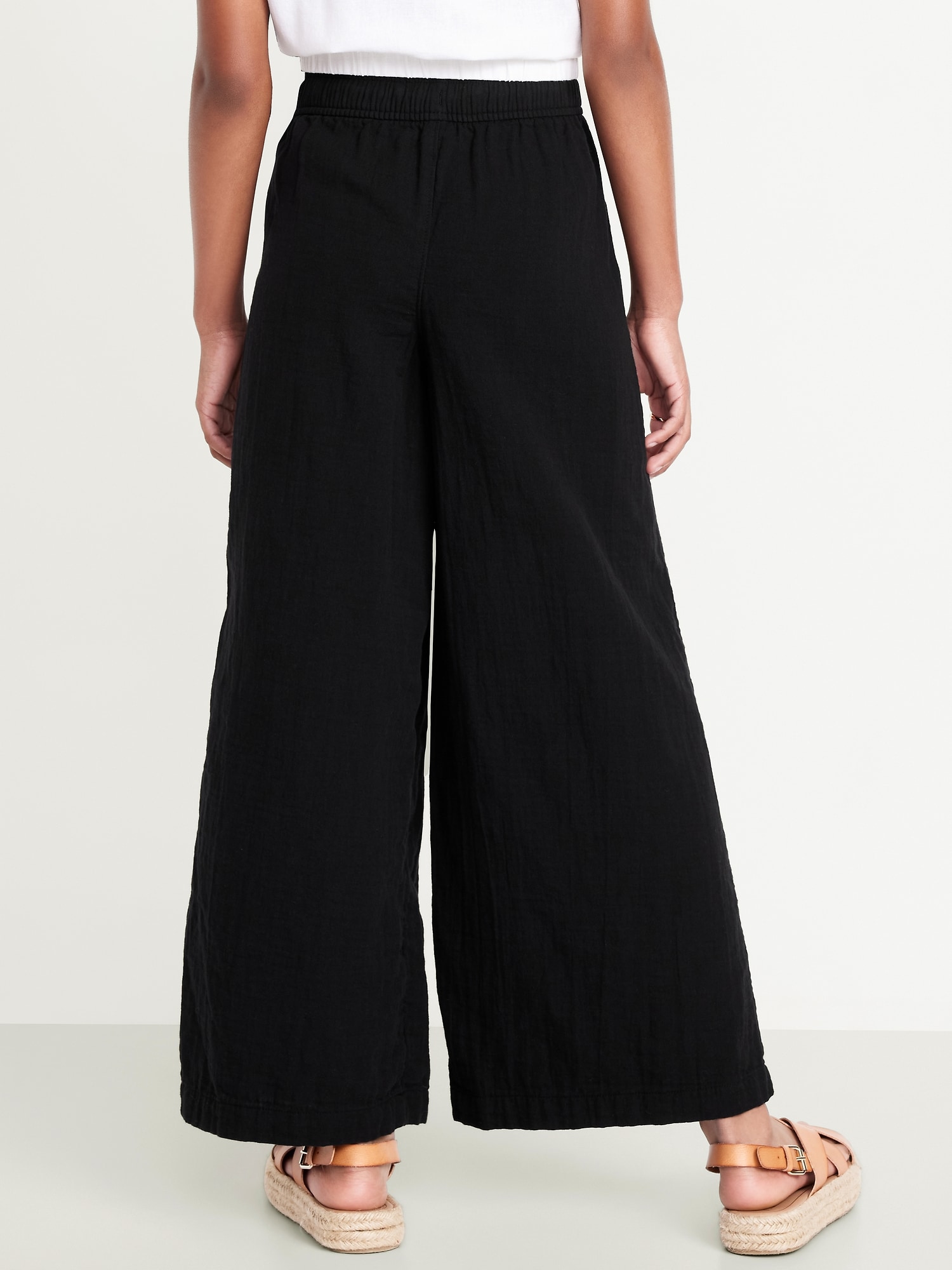 Loose Printed High-Waisted Double-Weave Wide-Leg Pants for Girls: elasticized waistband, high rise, functional drawstring, diagonal on-seam pockets, wide leg, easy pull-on style, #704705