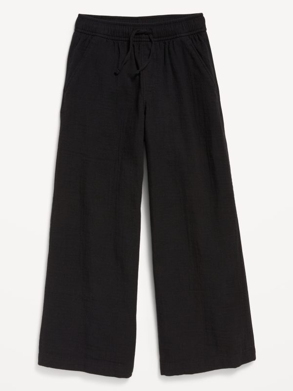 Loose Printed High-Waisted Double-Weave Wide-Leg Pants for Girls: elasticized waistband, high rise, functional drawstring, diagonal on-seam pockets, wide leg, easy pull-on style, #704705