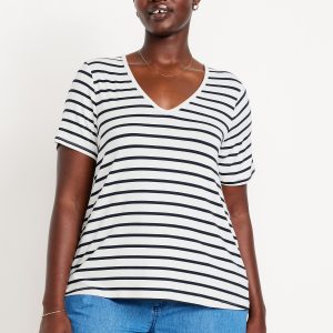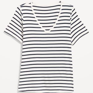 Luxe V-Neck Striped T-Shirt: A draped, flawless fit that’s ultra soft.v-neck, short sleeves, #796584