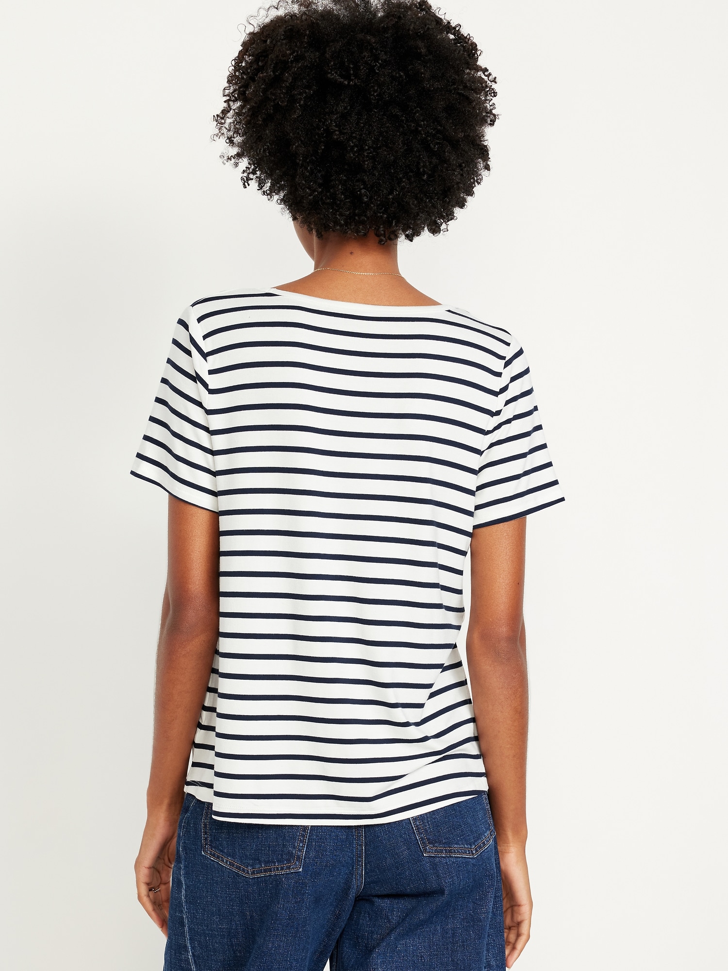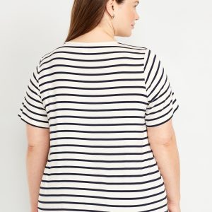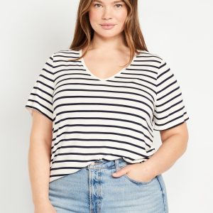 Luxe V-Neck Striped T-Shirt: A draped, flawless fit that’s ultra soft.v-neck, short sleeves, #796584