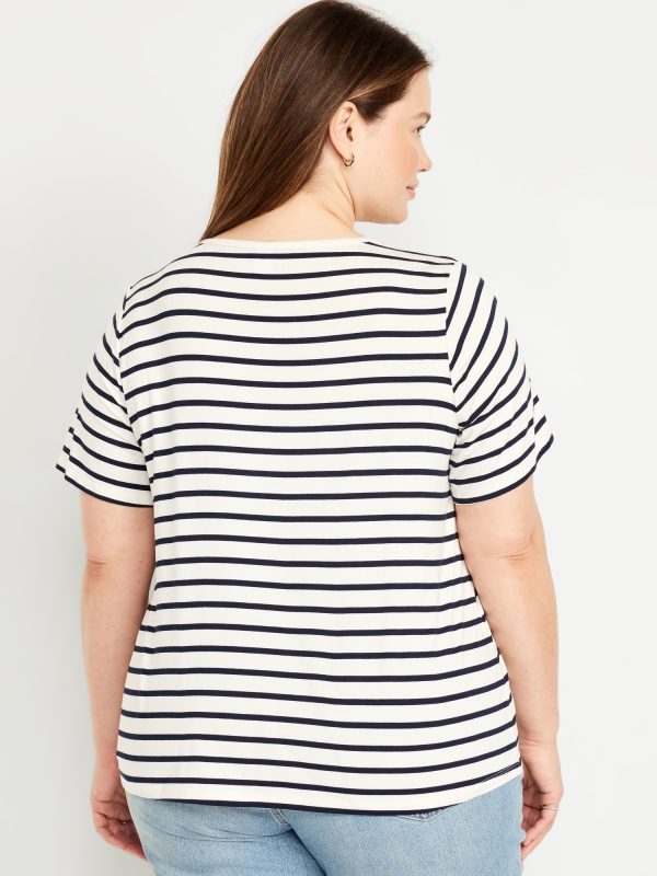 Luxe V-Neck Striped T-Shirt: A draped, flawless fit that’s ultra soft.v-neck, short sleeves, #796584